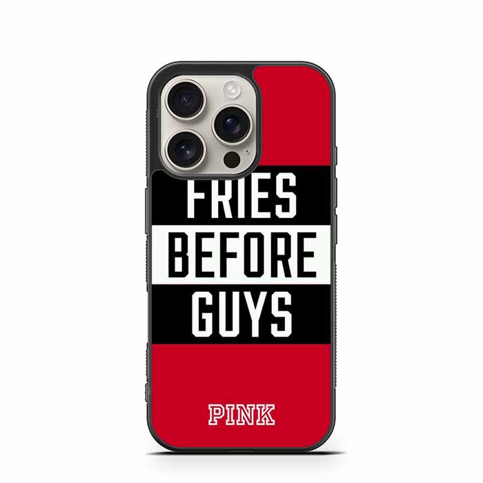 Victoria's Secret Pink Fries Before Guys iPhone 16 | iPhone 16 Plus | iPhone 16 Pro | iPhone 16 Pro Max Case is an amazing case to protect your phone in every situation with photographic printed images and completed with a smooth finish - an instant eye-catcher. Made for ultimate protection against everyday wear and tear, this case features a slim form. It’s shock-absorbing, scratch-resistant, and lightweight enough to always keep it looking good.